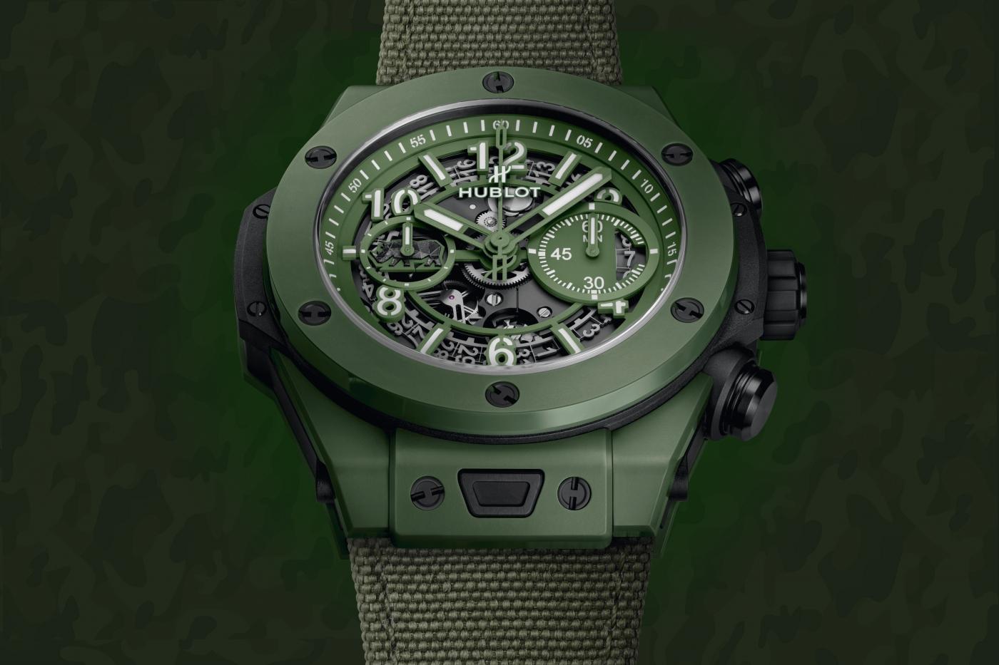 Big Bang Unico SORAI es un exclusivo reloj con tonalidades verdes, inspirado en la naturalidad de la gama cromática de los bosques de Sudáfrica, con caja de cerámica en color verde y correa de caucho o velcro de un tono verde camuflaje. La caja, de 45mm, ha sido perfectamente diseñada con materiales como la cerámica verde pulida y microgranallada, así como con detalles como el cristal de zafiro con tratamientos antirreflejos y con aplique de rinoceronte sobre la cifra 9 de la esfera. Además, cuenta con el movimiento cronógrafo automático Unico. Se trata de un movimiento pionero, diferente y exclusivo que revela su exquisita arquitectura, con doble embrague y rueda de pilares trasladados al costado de la esfera.