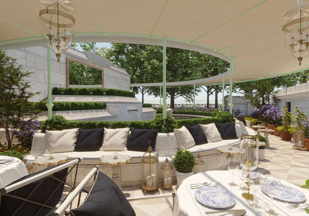 The setting is part of the same logic. The restaurant will be located on the building’s rooftop, with an open terrace and a south-facing aspect conceived as a vantage point over key urban landmarks and the ceremonial route of The Mall leading toward Buckingham Palace. In the premium segment, a view is not framed solely as an aesthetic attribute: it also shapes the type of booking, celebrations, corporate engagements, international visitors, and ultimately defines the venue’s competitiveness against other London addresses that have turned their upper levels into a gastronomic asset.
