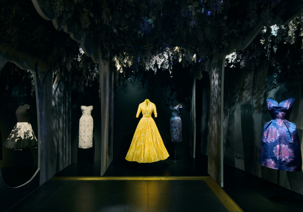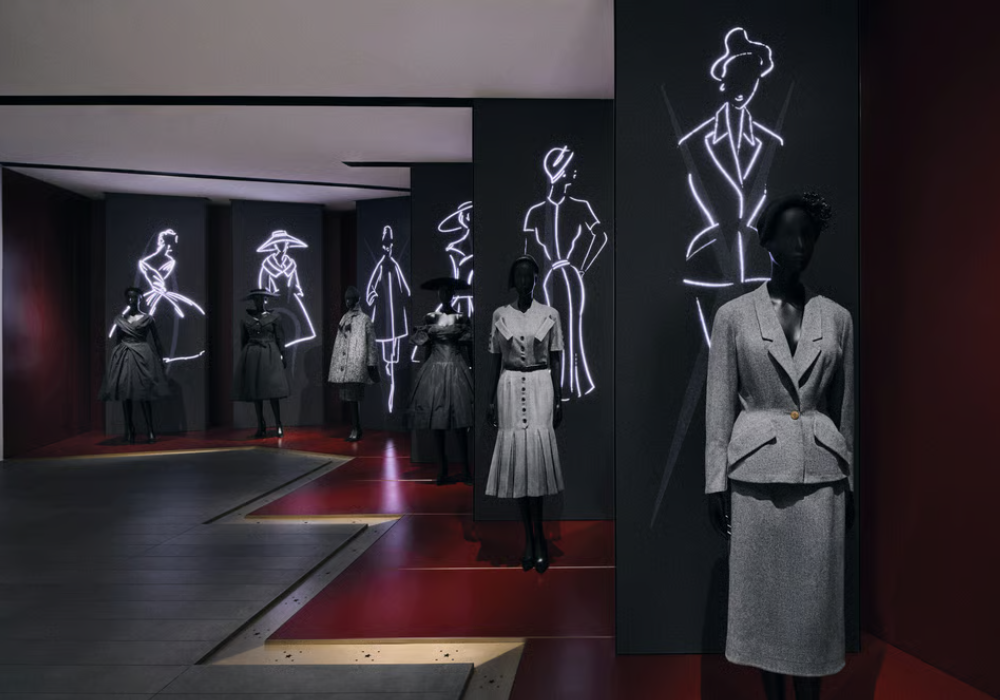 La exposición surge a partir de la relación entre Christian Dior y Azzedine Alaïa, dos figuras que han definido la evolución de la alta costura desde enfoques distintos pero complementarios. Alaïa fue un coleccionista meticuloso de prendas históricas y reunió, durante décadas, piezas originales de Dior que consideraba esenciales para entender la arquitectura de la moda. Parte de aquel archivo, conservado en la Fondation Azzedine Alaïa, constituye hoy uno de los conjuntos documentales más relevantes de la historia del diseño. La colaboración entre ambas instituciones permite exhibir creaciones que rara vez se muestran al público, entre ellas vestidos de los años cincuenta, siluetas New Look, prototipos de atelier y piezas que Alaïa adquirió en subastas internacionales.