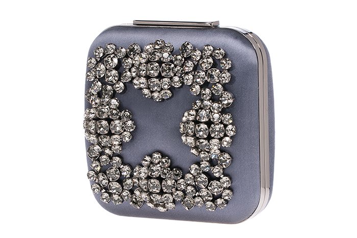 La nueva línea se compone de seis modelos distintos de clutch que siguen la misma línea estética que distingue sus zapatos: creados mediante un proceso artesanal en satén y crepé procedente de China y decorados con cristales de Swarovki.