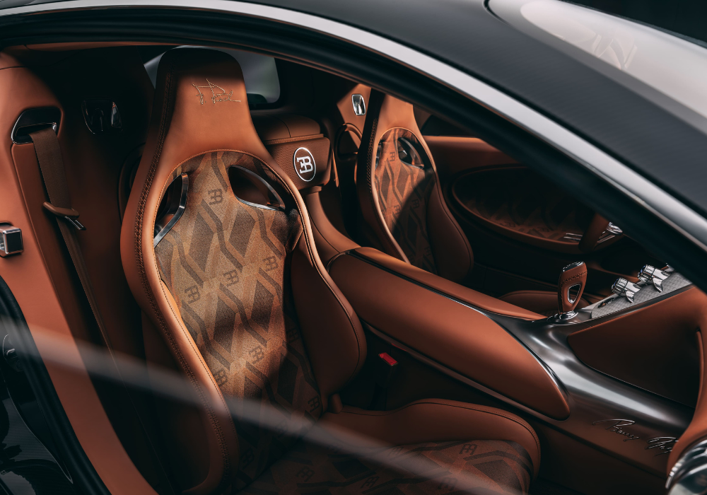 El interior del vehículo mantiene el lujo característico de Bugatti, con acabados en cuero y Alcántara, detalles en fibra de carbono y una instrumentación digital avanzada. Cada componente ha sido diseñado para ofrecer confort y exclusividad, reflejando la filosofía de la marca en cuanto a personalización y atención al detalle.