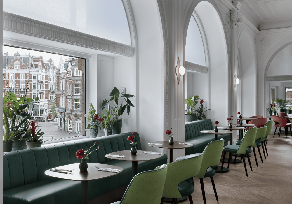 Construido en 1928 para los Juegos Olímpicos de Ámsterdam, el edificio, obra del arquitecto G.J. Rutgers, conserva la elegancia del expresionismo arquitectónico, con su característica fachada de ladrillo ornamentado y detalles escultóricos que evocan la riqueza cultural de la ciudad. Tras una cuidadosa renovación, el hotel ha sabido mantener su herencia histórica mientras incorpora los más altos estándares de confort y diseño moderno.